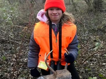 Jamie with her Pa buck. Youth Field day or Family Field day are great instruction on how to safely and ethically harvest our wonderful array of Pa's outdoor bounty.