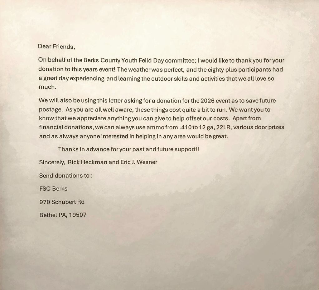 Many thanks for this year's 2025 donations! 2026 Youth Field Day June 13th!